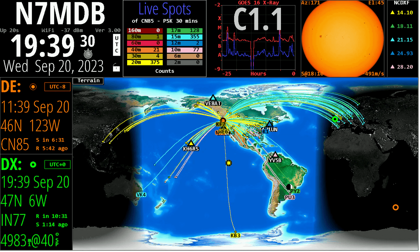 Our HamClock Setup automatically enables HamClock's "Live Spots" feature so you can see where bands are currently active at your DE. All you have to do is enter your callsign and location on first run and everything else will just work.